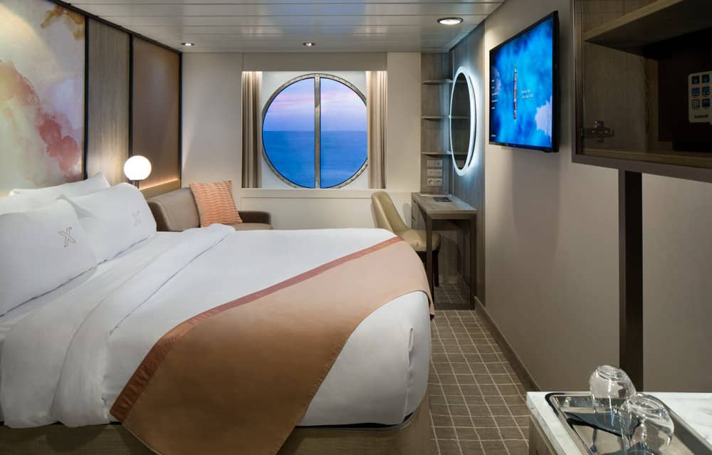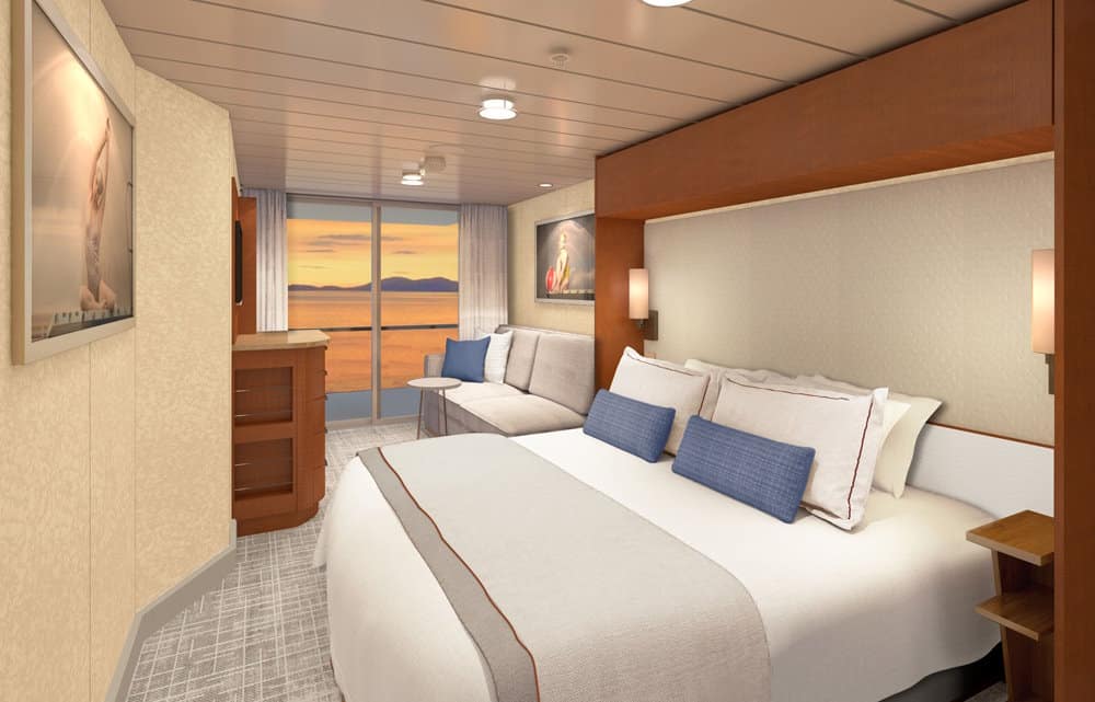 - Interactive flat screen TV with multiple channels and interactive mode that allows you to check your bill, make shore excursion reservations, order room service, watch shows and movies on demand*
